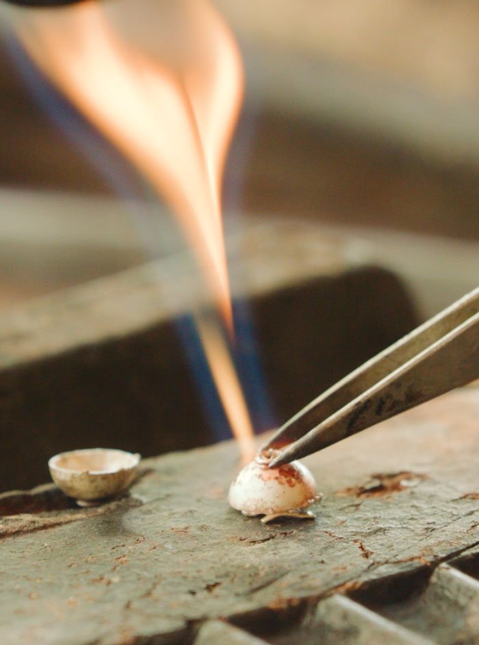 Traditionell arbeiten balinesische Silberschmiede gerne mit Metall, das einen hohen Silbergehalt aufweist, wie 925 Sterlingsilber, weil es weich genug und gleichzeitig formstabil ist, um es zu schmieden, treiben oder granulieren.