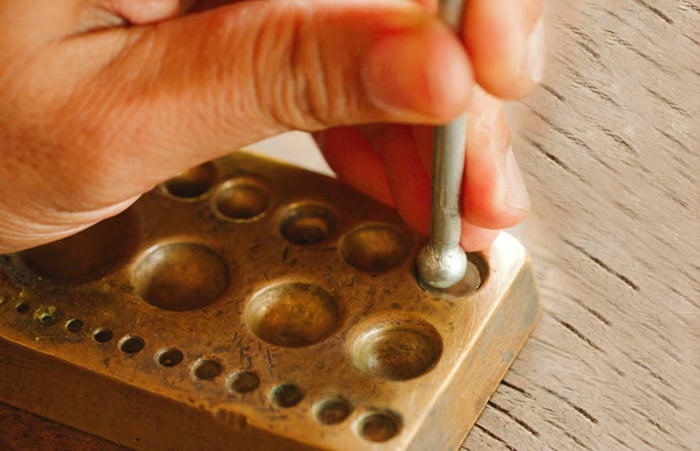 Aus Silberblech werden kleine Scheiben ausgeschnitten und in mehreren Schritten zu Halbkugeln gehämmert. Diese werden werden danach unter Hitze zu einer Kugel (Plong) zusammengefügt. Um gleichmäßig geformte Kugeln zu erhalten ist langjährige Erfahrung und viel Sorgfalt erforderlich, denn das Silber kann sich bei zu hohen Temperaturen leicht verformen.