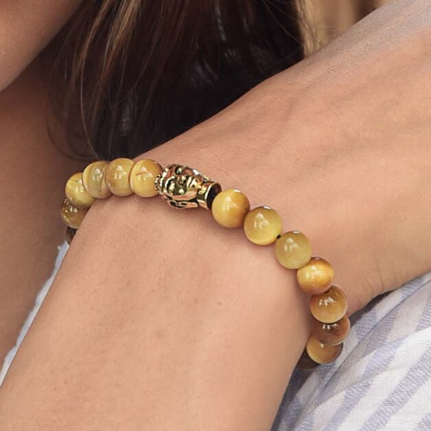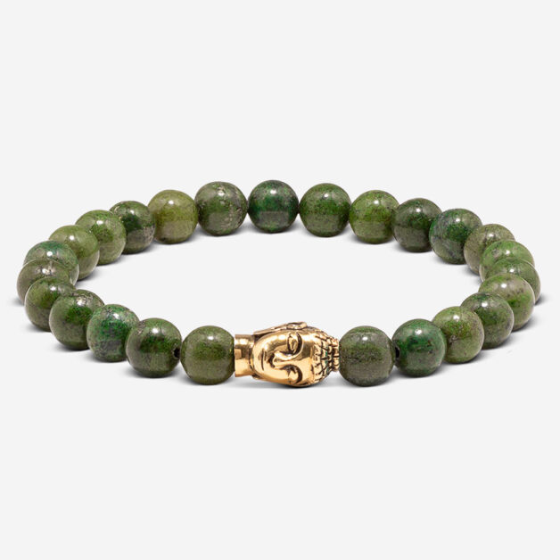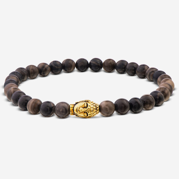 Hochwertige Edelsteine und die Vergoldung in Gelbgold (24 Karat) und Roségold (18 Karat) sowie Black Rhodium machen unsere Buddha Armbänder zum perfekten Accessoire und echten Blickfang an Deinem Handgelenk. Für einen edlen Matteffekt haben wir den Buddhakopf durch künstliche Oxidation geschwärzt. Die Oberfläche wird durch sanftes Polieren wieder zum Glänzen gebracht, die Vertiefungen verbleiben jedoch matt. Dadurch entsteht ein bemerkenswerter Hell-Dunkel-Kontrast, der dem Gesicht des Buddha einen ausgeprägt plastischen Effekt verleiht.