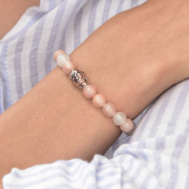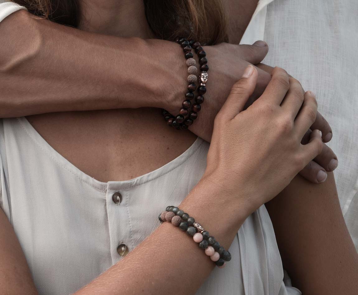 Hochwertige Edelsteinperlen in edler Symbiose mit unserem Buddha aus Sterlingsilber, schaffen echte Unikate als Blickfang für Dein Handgelenk und Ausdruck von Gelassenheit und Individualität.