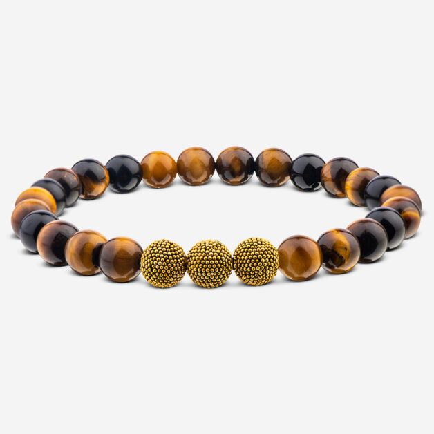Vergoldetes Sterlingsilber mit Onyx & braunem Tigerauge - 8mm