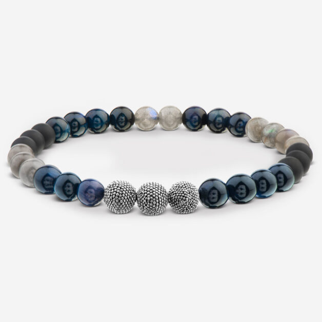 Mattiertes Sterlingsilber mit Tigerauge, Onyx & Labradorit - 6mm