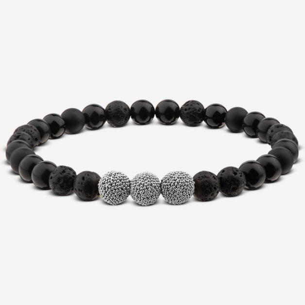 Mattiertes Sterlingsilber mit Onyx & Lava - 6mm