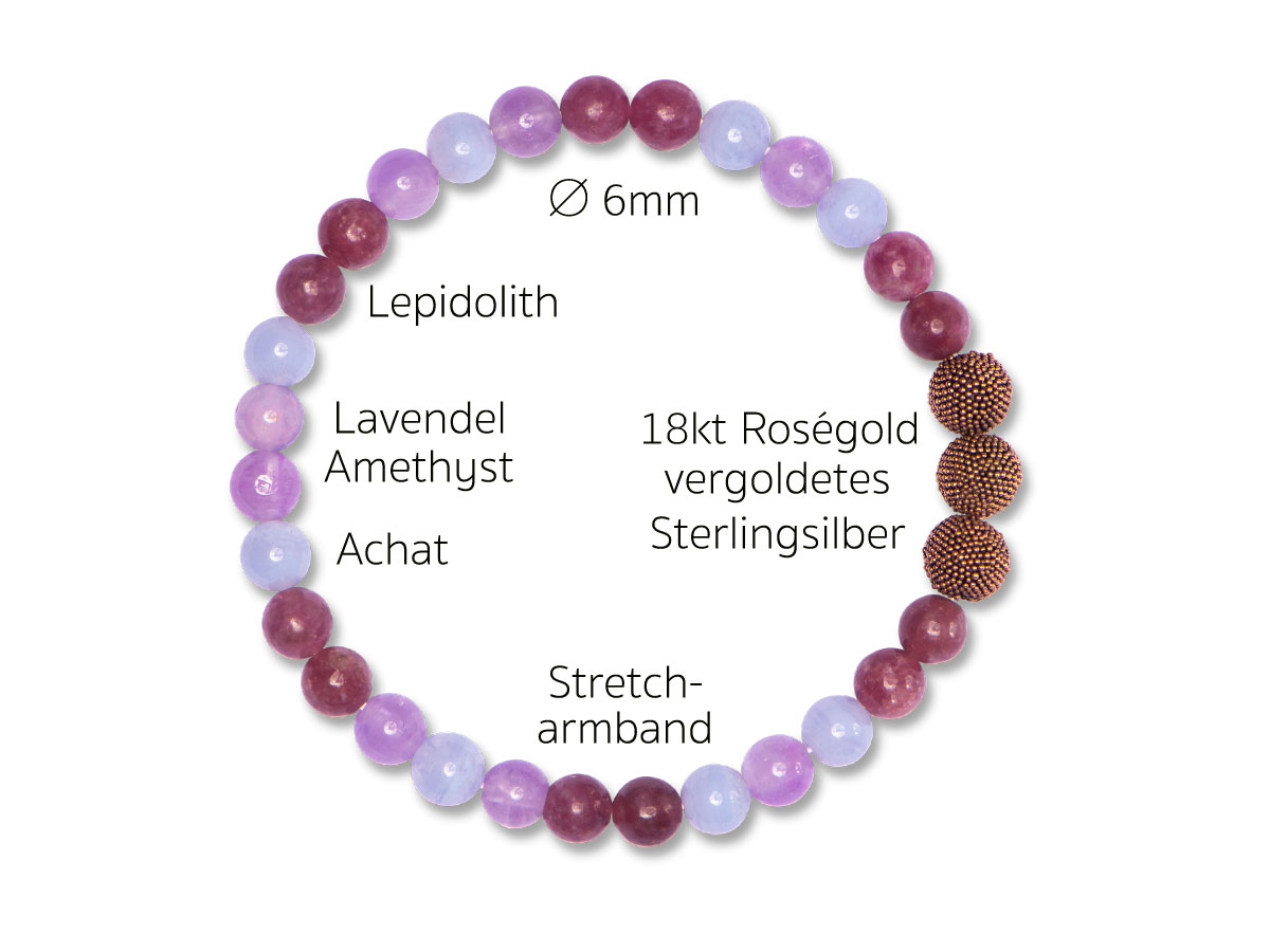 Handgefertigte Silberperlen 18kt Roségold matt vergoldet mit Achat, Amethyst & Lepidolith Ø 6mm