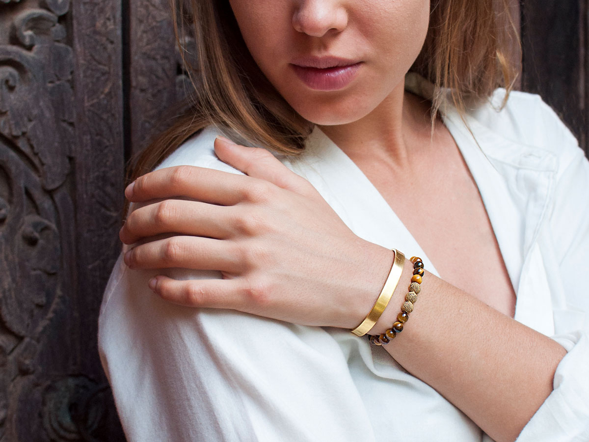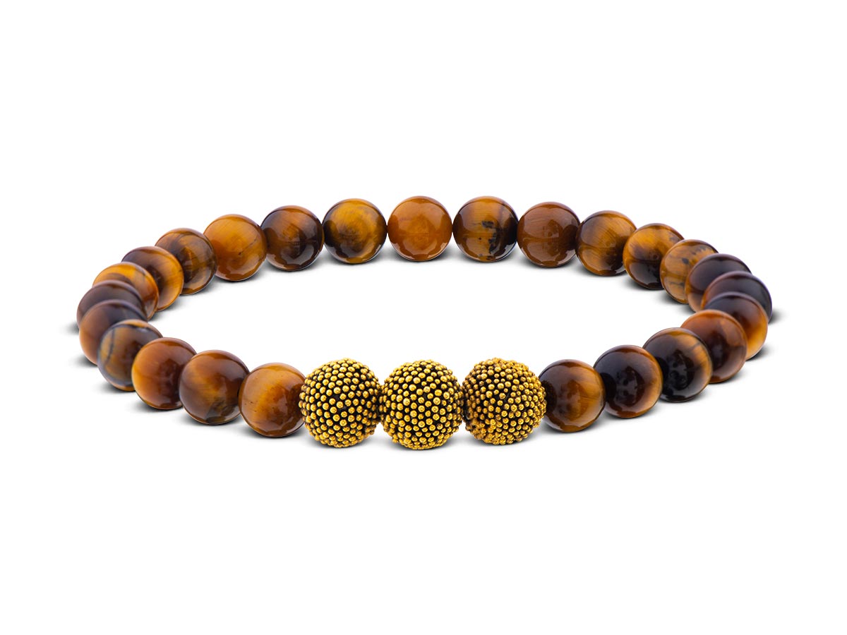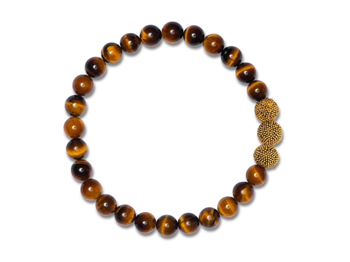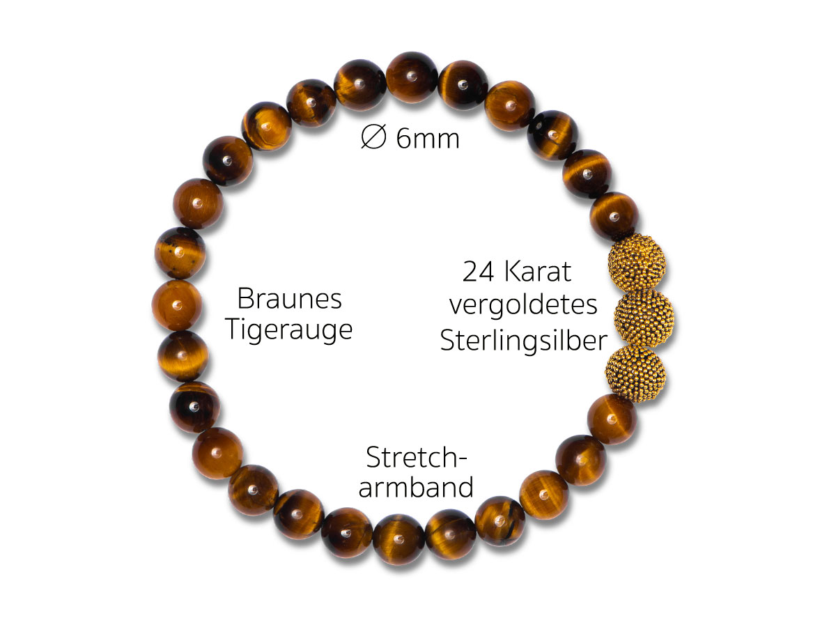 Dieses Damenarmband biete Dir einen stylischen Mischung aus den warmen Erdtönen des braunen Tigerauges in 8 mm und sanft leuchtendem Gold der vergoldeten und mattierten Silberperlen. Optisch ästhetisch und stilvoll abgerundet als dezentes Highlight für Deinen Look, egal ob edler Freizeit Style oder Business Outfit.