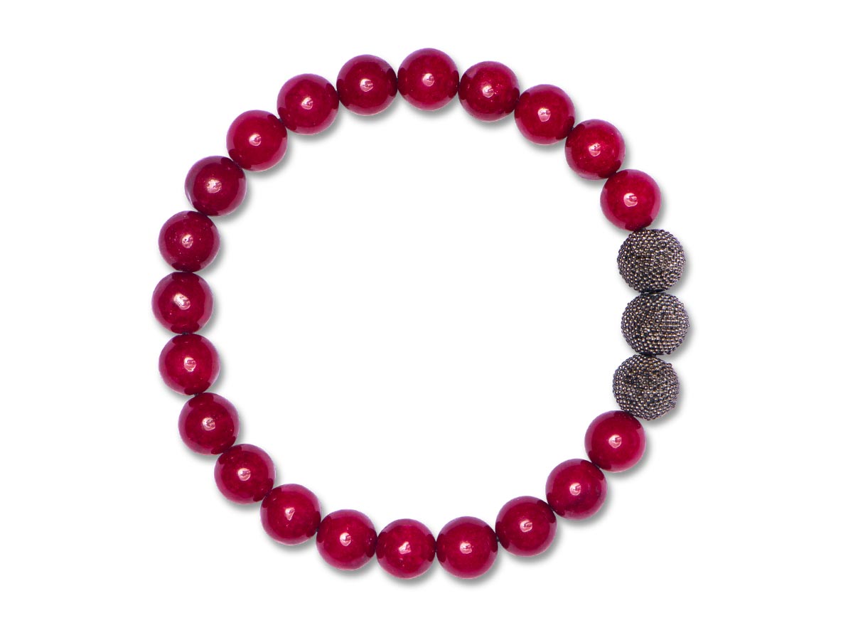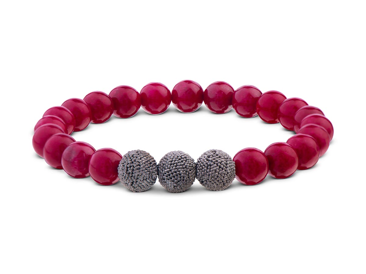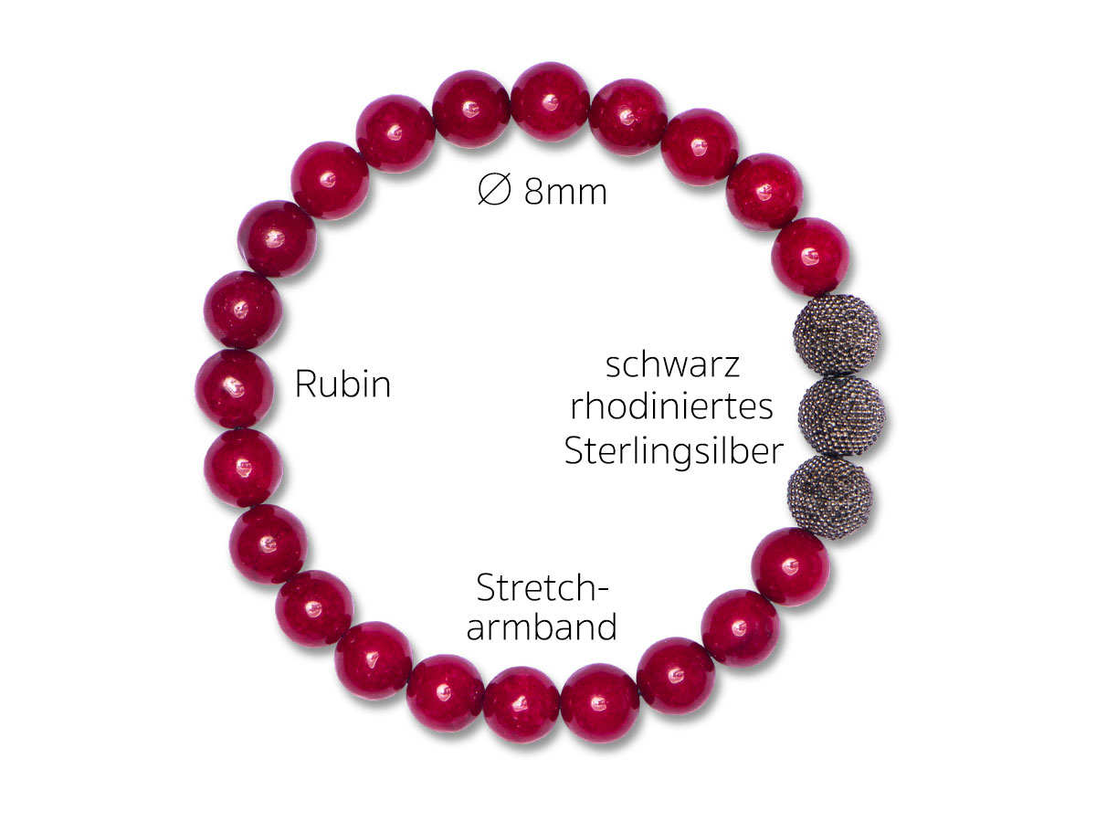 Dein Style - dein Statement! Dieses markante Damenarmband lebt von der aufregenden Komposition aus Blutrot & Graphitgrau, umgesetzt mit rotem Rubin in 8 mm und in exklusivem Black Rhodium veredelten Silberperlen. Ein Eyecatcher für jedes Outfit!