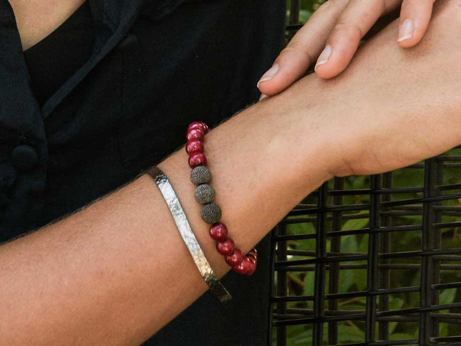 Alle Armbänder werden auf einem Stretchband aufgefädelt und gleiten so mühelos über Deine Hand. Wir empfehlen beim An- und Ablegen das Armband über den Handrücken zu rollen.
