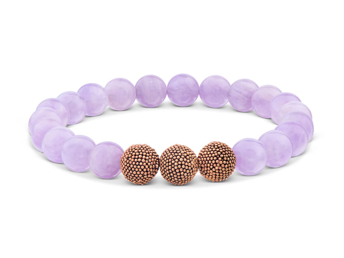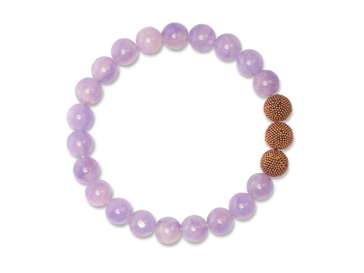 Einen betont femininen Akzent setzt das zweifarbige Damenarmband aus exklusivem Lavendel Amethyst mit seinen 8 mm Beads. Die in Roségold vergoldeten Silberperlen runden das edle Farbbild harmonisch ab. Schlicht, unkompliziert und einfach schön für Dein elegantes Statement.
