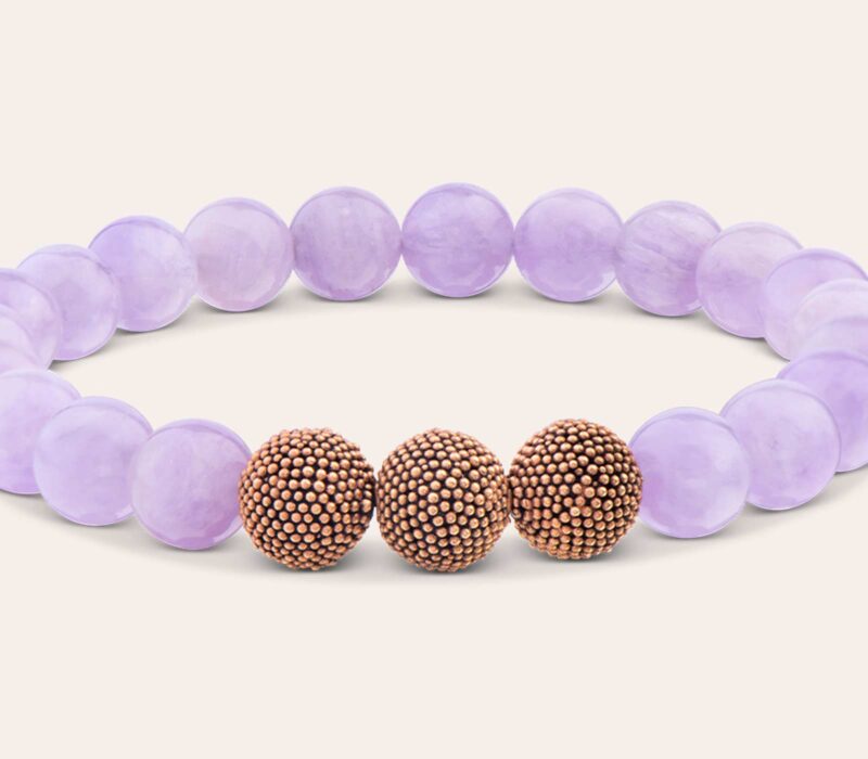 Lavendel Amethyst ist ein Farbschmeichler, denn sein Farbton ist so einmalig wie verführerisch. Das hell- bis dunkelviolette Mineral wirkt durchscheinend bis durchsichtig und an einer Perle können sich weiche, blass violette Flecken mit glasigen oder intensiv violetten Schattierungen abwechseln. Dieses Farbspiel verleiht dem Amethyst sein verführerisches Erscheinungsbild. Lavendel Amethyst klärt überflüssgie Gedanken und Empfindungen und hat daher eine besonders reinigenden Wirkung auf Deinen Geist wie auch Deine Gefühlswelt, was die eigene Konzentration fördert. Er löst zudem Kummer und Trauer sowie Prüfungsangst oder Lernschwierigkeiten.