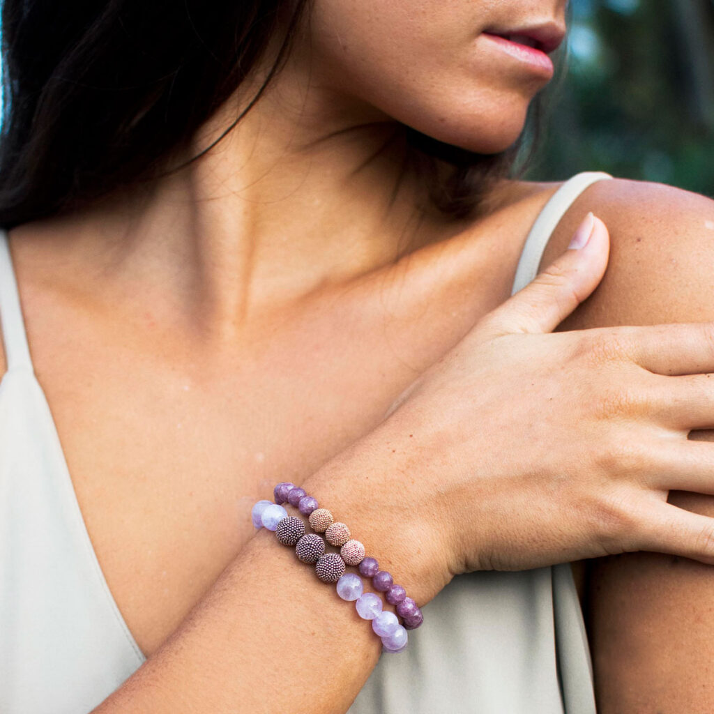 Alle Armbänder werden auf einem Stretchband aufgefädelt und gleiten so mühelos über Deine Hand. Wir empfehlen beim An- und Ablegen das Armband über den Handrücken zu rollen.