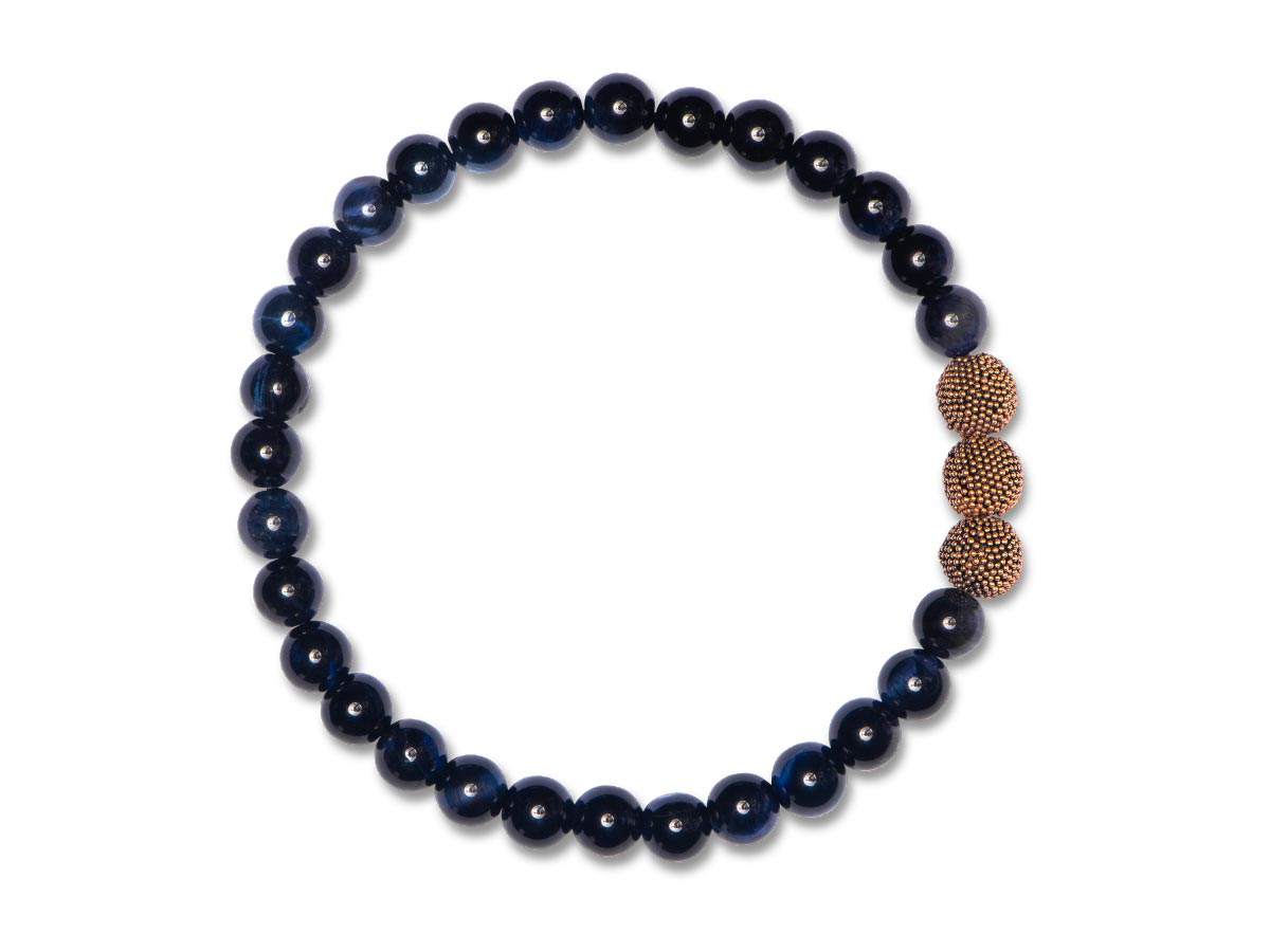 Schlichte Eleganz bietet die stilvolle Symbiose blaue Tigerauge (6 mm) und dem edlen Roségold der matt vergoldeten Jawan Beads. Dieses Herrenarmband wird zum dezenten Eyecatcher Deines Outfits – ganz gleich ob modischer Look oder Businessoutfit.