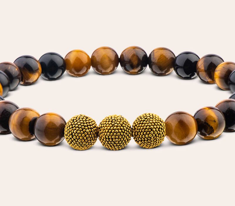 Braunes Tigerauge & Onyx Ø 8mm mit handgefertigten Silberperlen in 24kt matt vergoldet