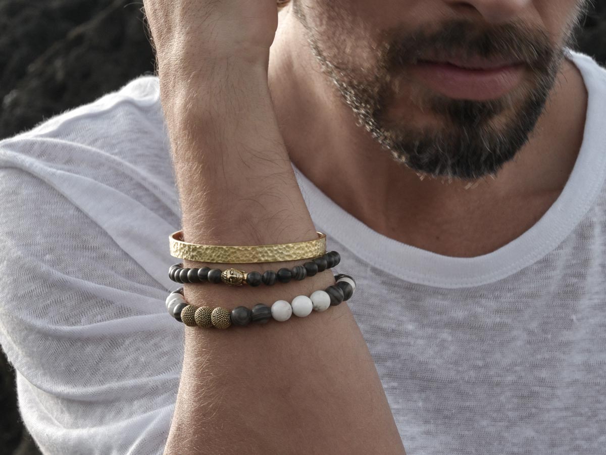 Alle Armbänder werden auf einem Stretchband aufgefädelt und gleiten so mühelos über Deine Hand. Wir empfehlen beim An- und Ablegen das Armband über den Handrücken zu rollen.