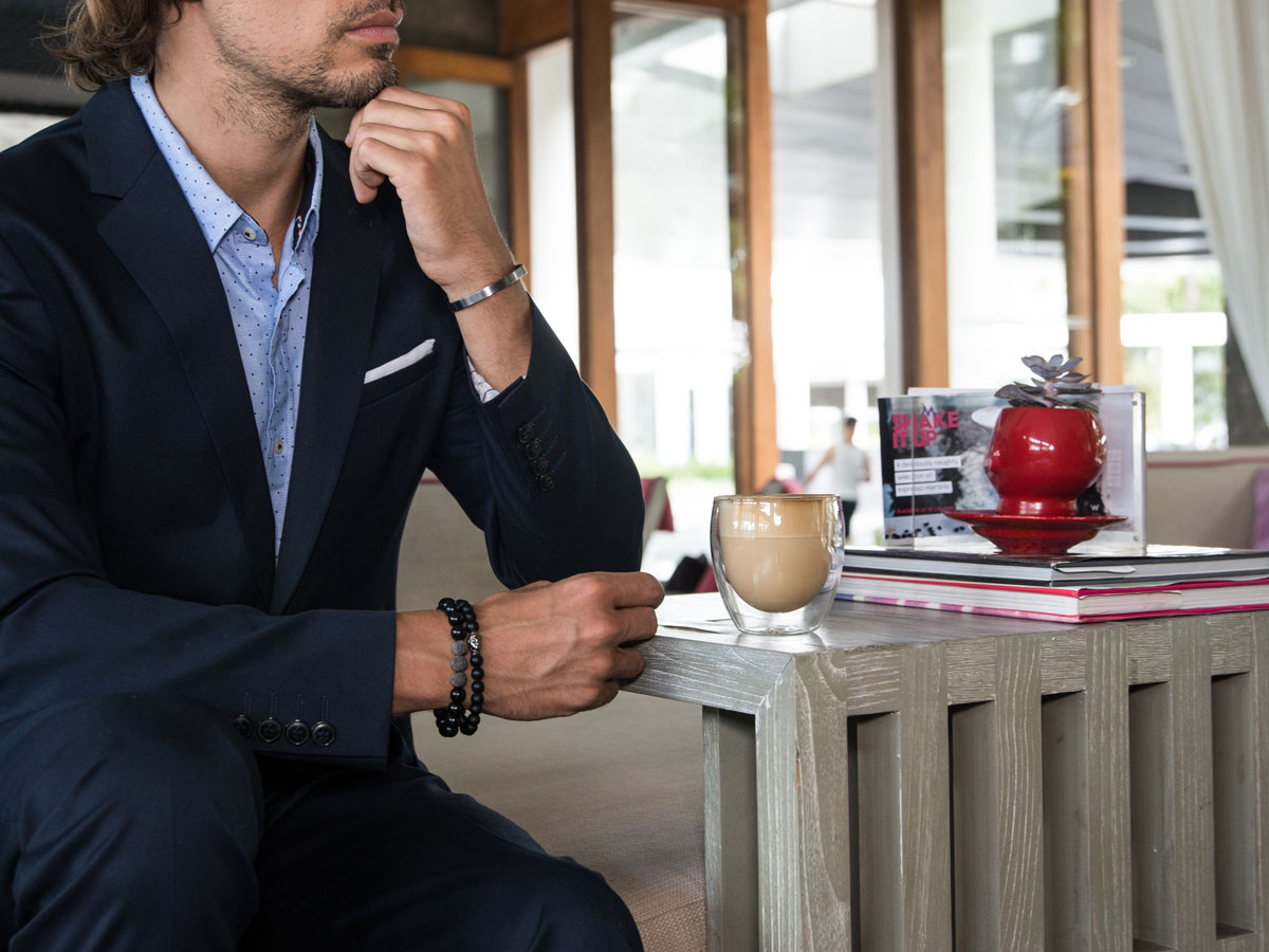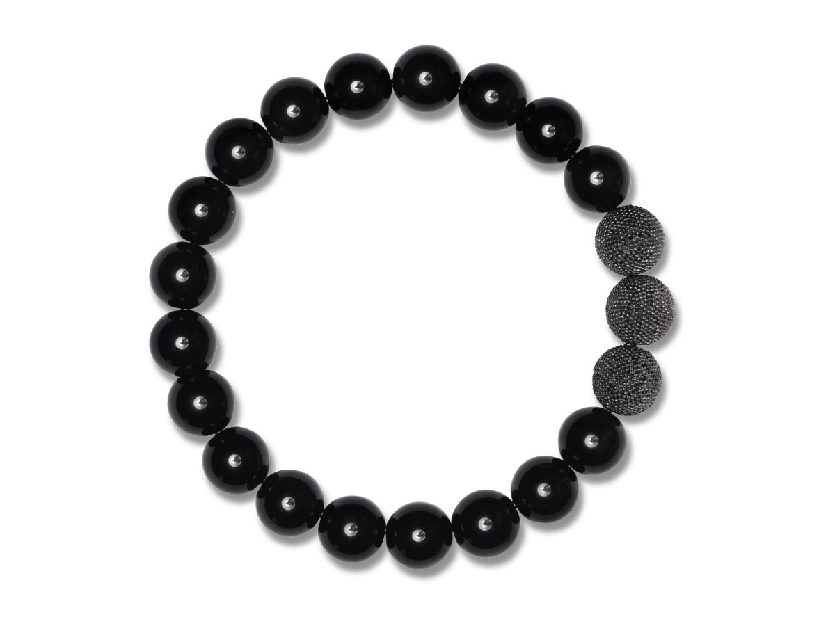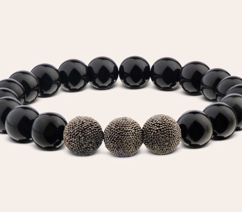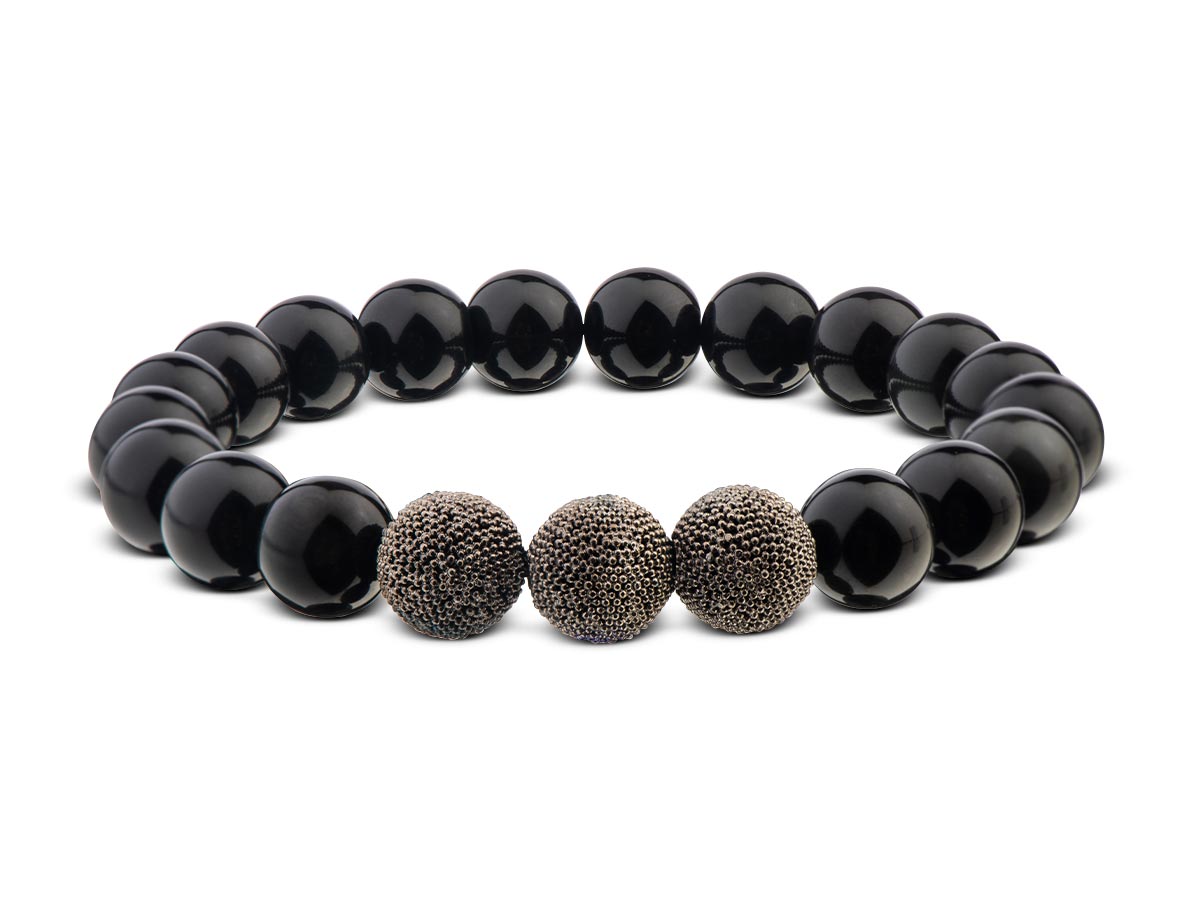 Dieses Herrenarmband zeigt, wie auch kräftige 10 mm Beads einen puristischen Stil erzeugen können. Der Obsidian harmoniert perfekt mit den in Black Rhodium veredelten Silberperlen und erzeugt so einen markanten Blickfang ohne aufdringlich zu wirken.
