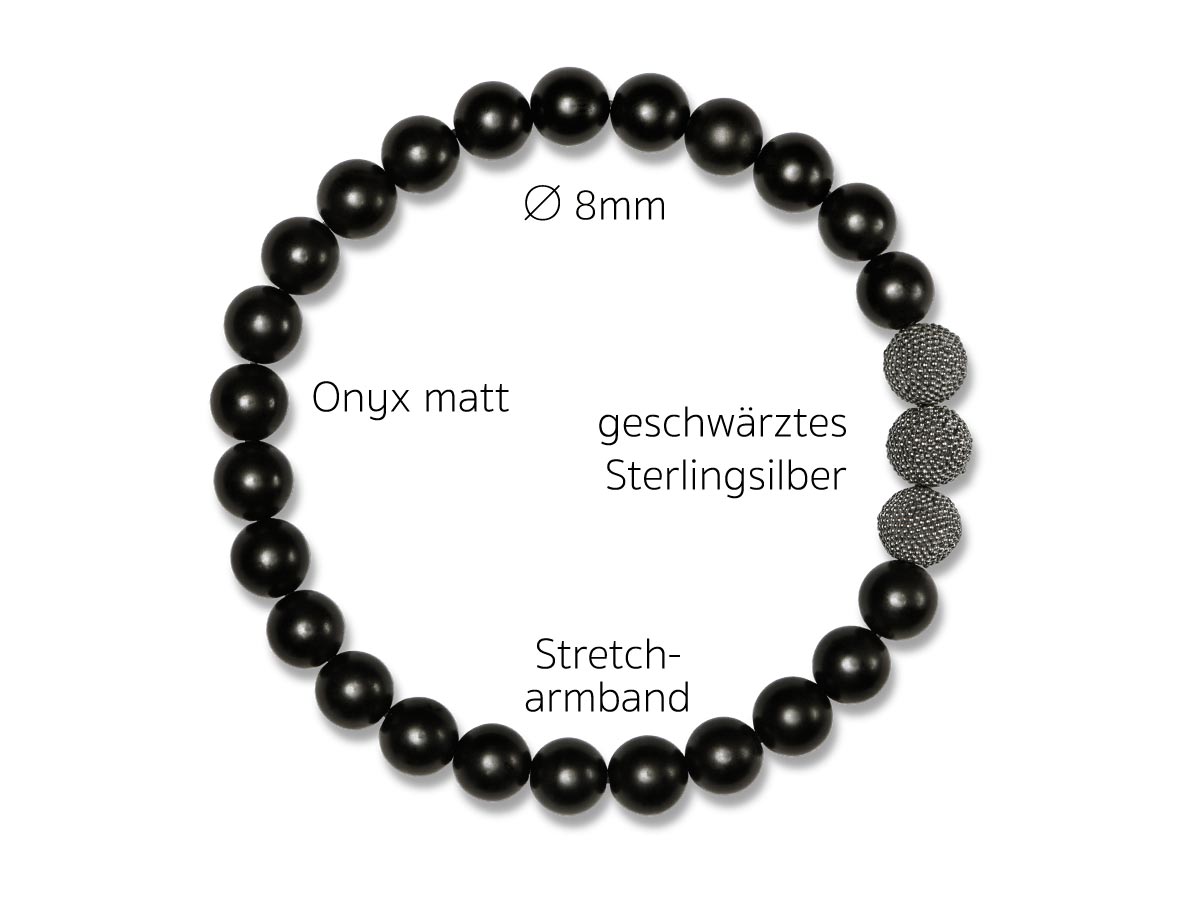Onyx matt Ø 8mm mit handgefertigten Silberperlen geschwärzt