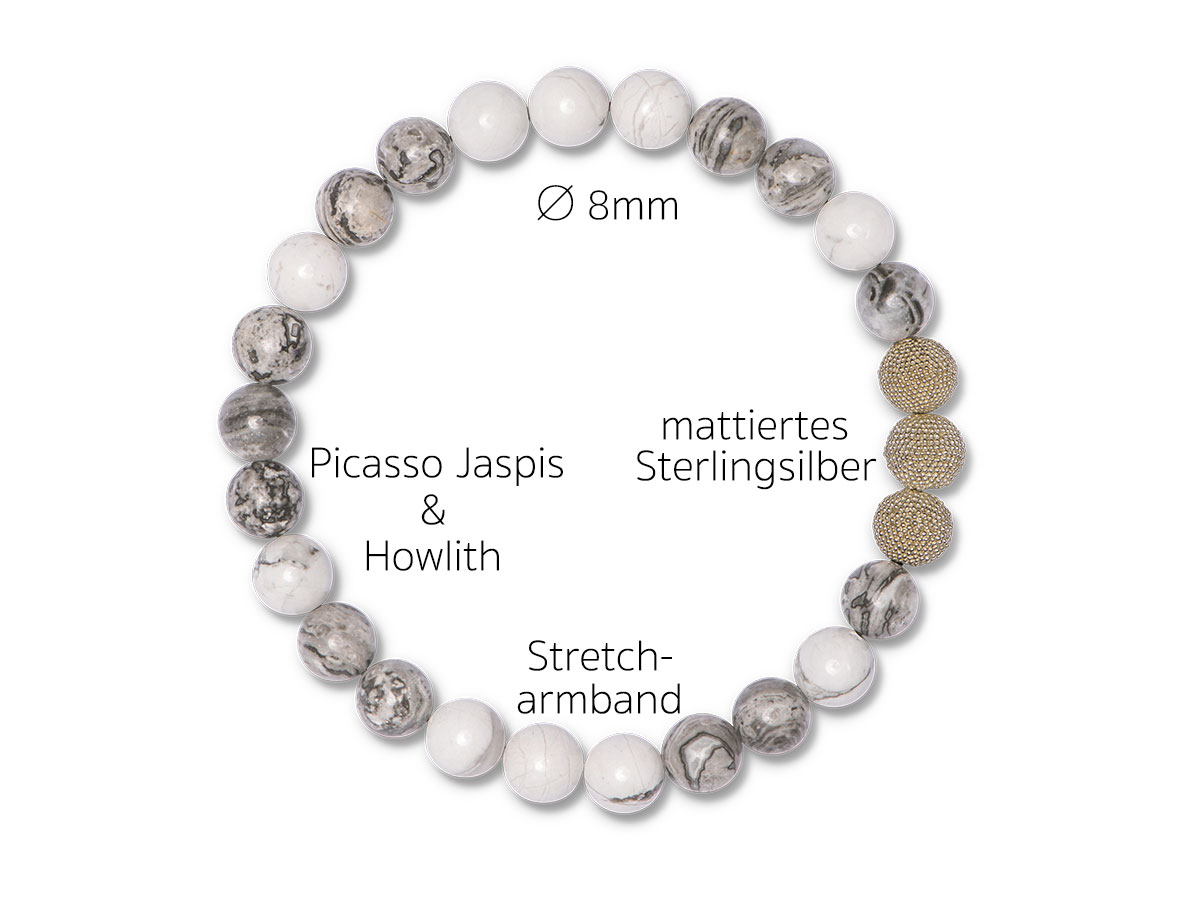 Mattiertes Sterlingsilber mit Howlith & Picasso Jaspis - 8mm