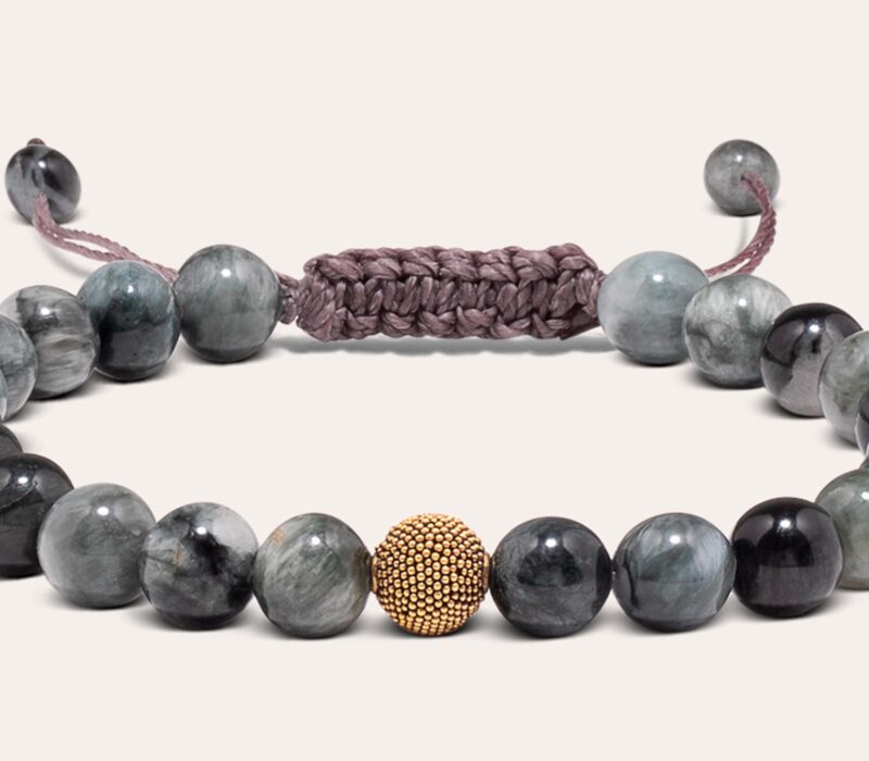 Der in Markramee geknüpfte Verschluss verleiht diesem klassischen Schmuckstück Raffinesse und unterstreicht seine Handwerkskunst. Jeder einzelne Knoten wurde mit großer Sorgfalt und Präzision ausgeführt, um Dir ein Armband von höchster Qualität und Haltbarkeit zu bieten.